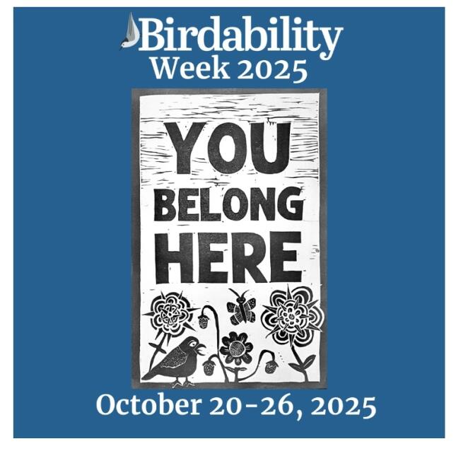 Throughout the week, stories, resources, and events highlight ways to make birding spaces more welcoming and accessible for all. Because birding is for every body, everywhere. This year’s theme is YOU BELONG HERE. Birdability celebrate birders with disabilities, by hosting virtual events, and encourages everyone to bird their way. Details at Birdability You Belong Here.