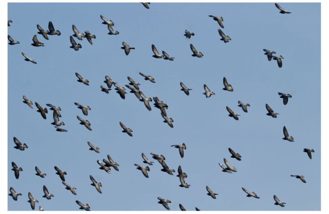 A flock of feral pigeons, the descendants of domesticated Rock Doves. Photo courtesy of Meg Miller.
