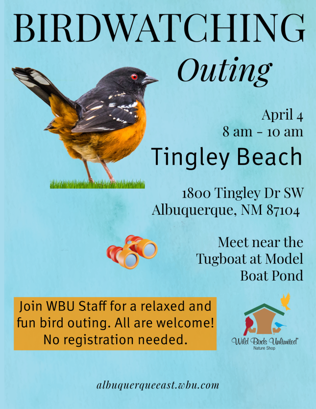 Josiah Lavender is a second-year PhD student in evolutionary biology at UNM’s Witt Lab. As the founder of Lavender Birding Tours, he’s led numerous walks, sharing his extensive knowledge of local bird species. His deep passion for bird ecology and conservation makes each tour and presentation he leads just as informative as they are enjoyable. Please visit and follow us @WildBirdsUnlimitedABQEast on YouTube. Contact Josiah here.
